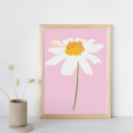Apportez une touche de délicatesse et de douceur à votre intérieur avec cette affiche murale vintage fleur de marguerite. Cette affiche décorative présente une marguerite blanche au cœur jaune vibrant, posée sur un fond rose pastel, idéale pour créer une ambiance paisible et joyeuse.