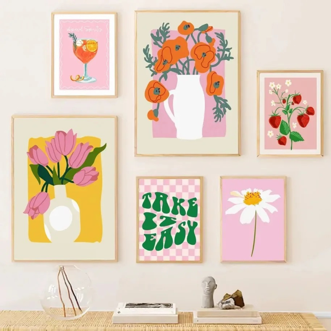 Ajoutez une touche de douceur à votre intérieur avec cette affiche murale vintage fraise. Parfait pour embellir une cuisine, un salon ou une chambre, cette affiche décorative présente un motif charmant de fraises mûres et de fleurs blanches sur un fond rose pastel, évoquant une ambiance rétro et joyeuse.