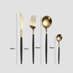 Idéal pour les amateurs de décoration de table raffinée, ce set de 12 couverts noir et or transforme chaque repas en une expérience chic et stylée. Il constitue également un cadeau parfait pour les occasions spéciales comme les mariages, anniversaires ou pendaisons de crémaillère. Ajoutez une note de glamour et de modernité à vos repas avec ce magnifique set de couverts noir et or.